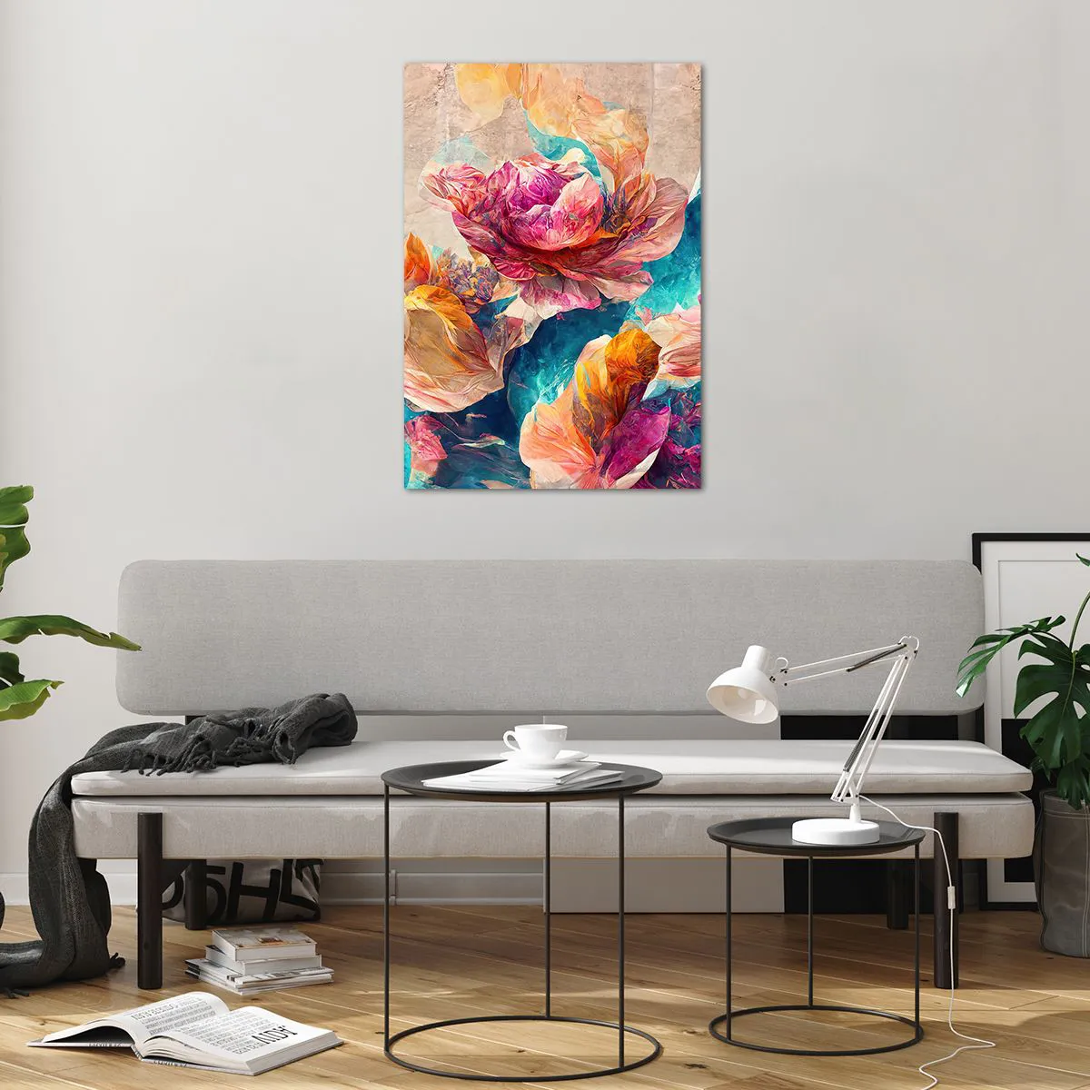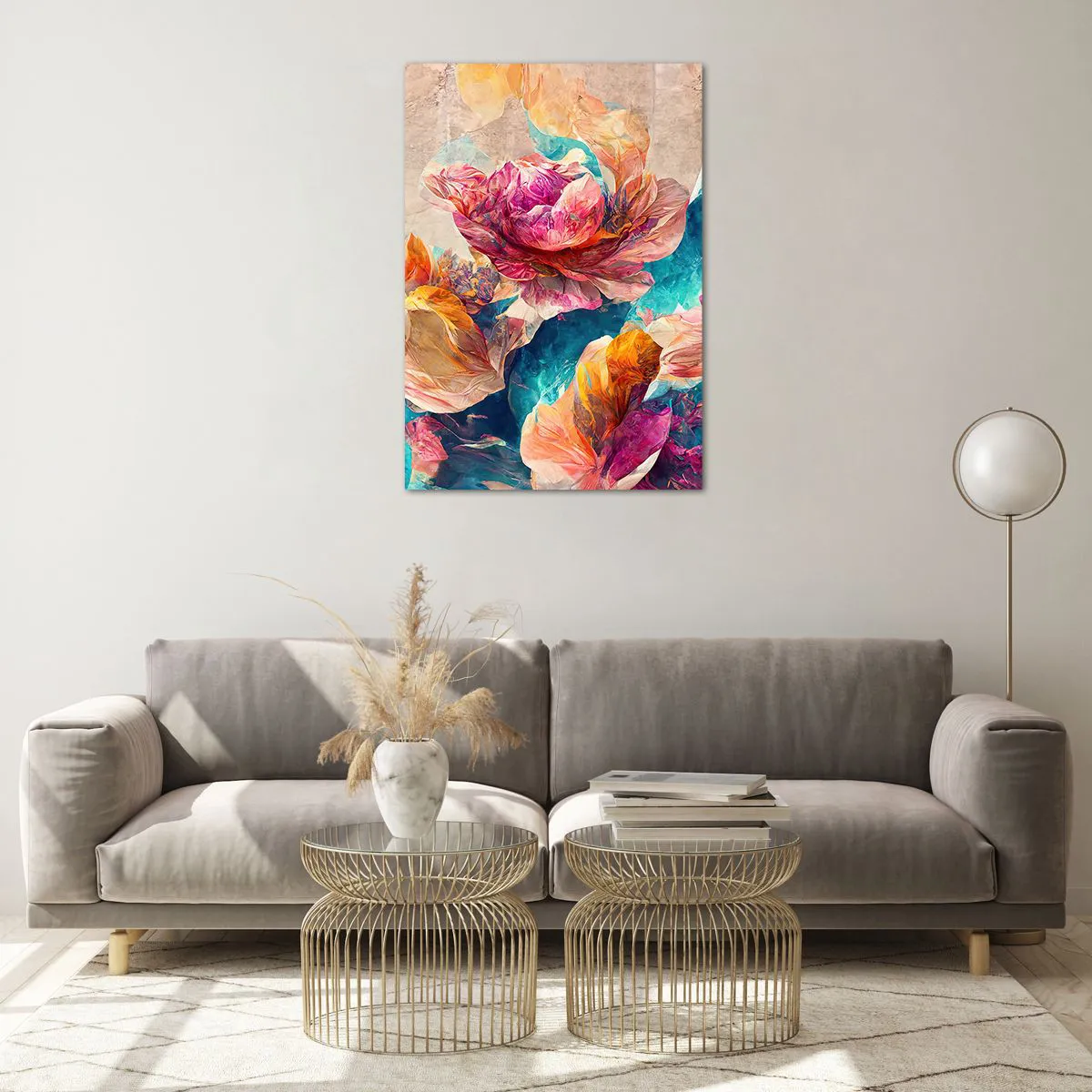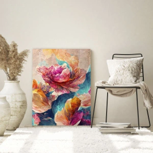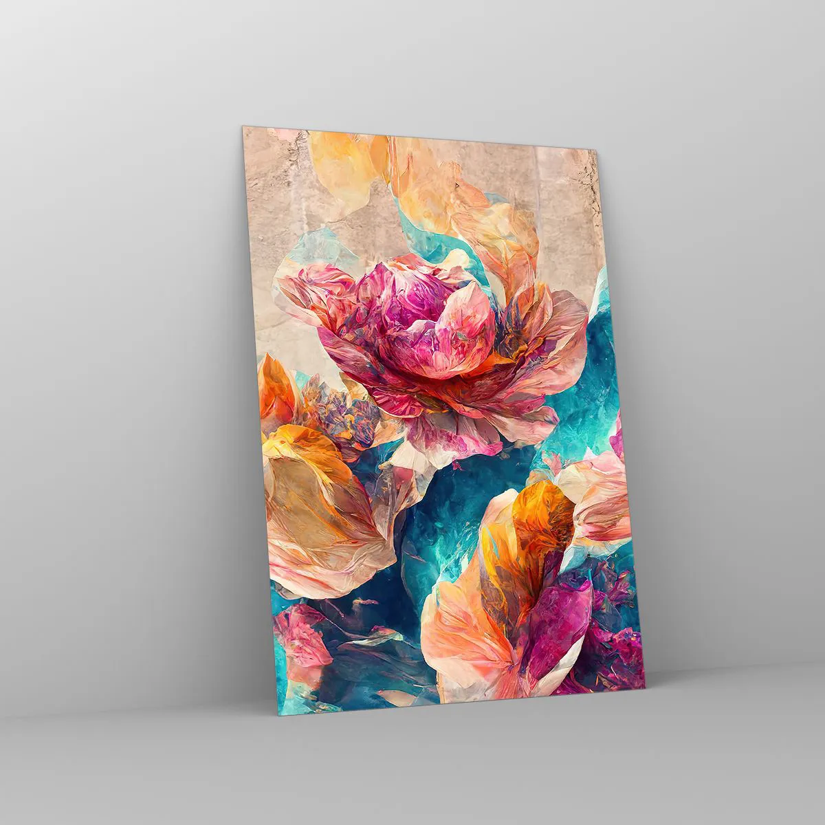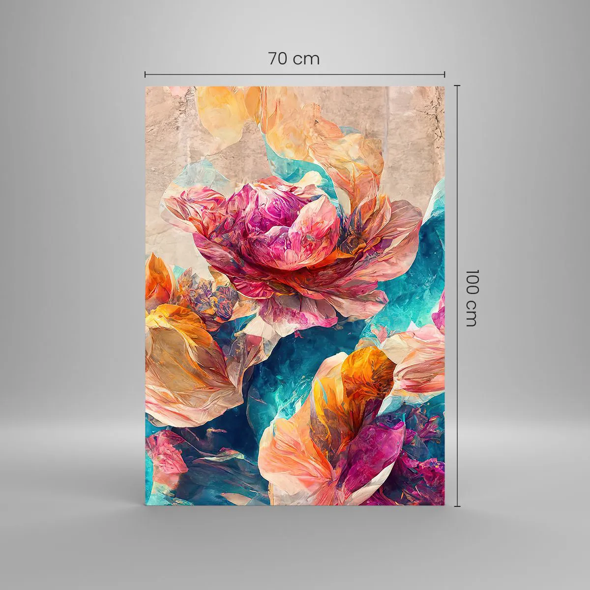 Glasbild - Bild auf glas - Bunte Blumen auf beigem Hintergrund - 70x100cm - Farbenpracht des Straußes - Moderne Wanddekoration für Wohnzimmer und Schlafzimmer ARTTOR