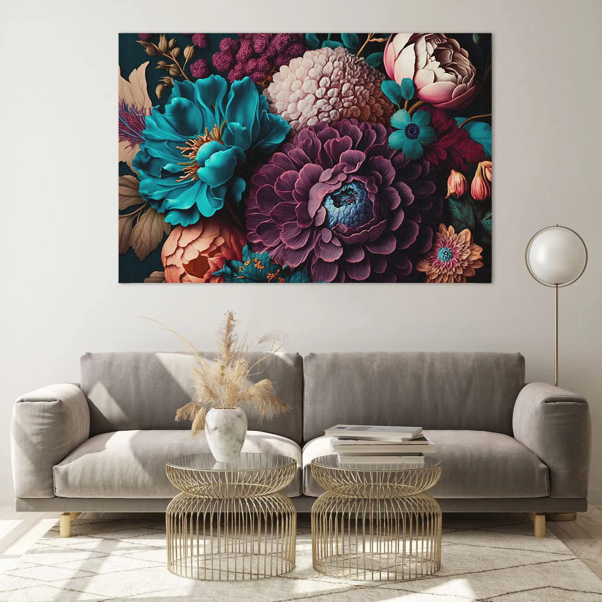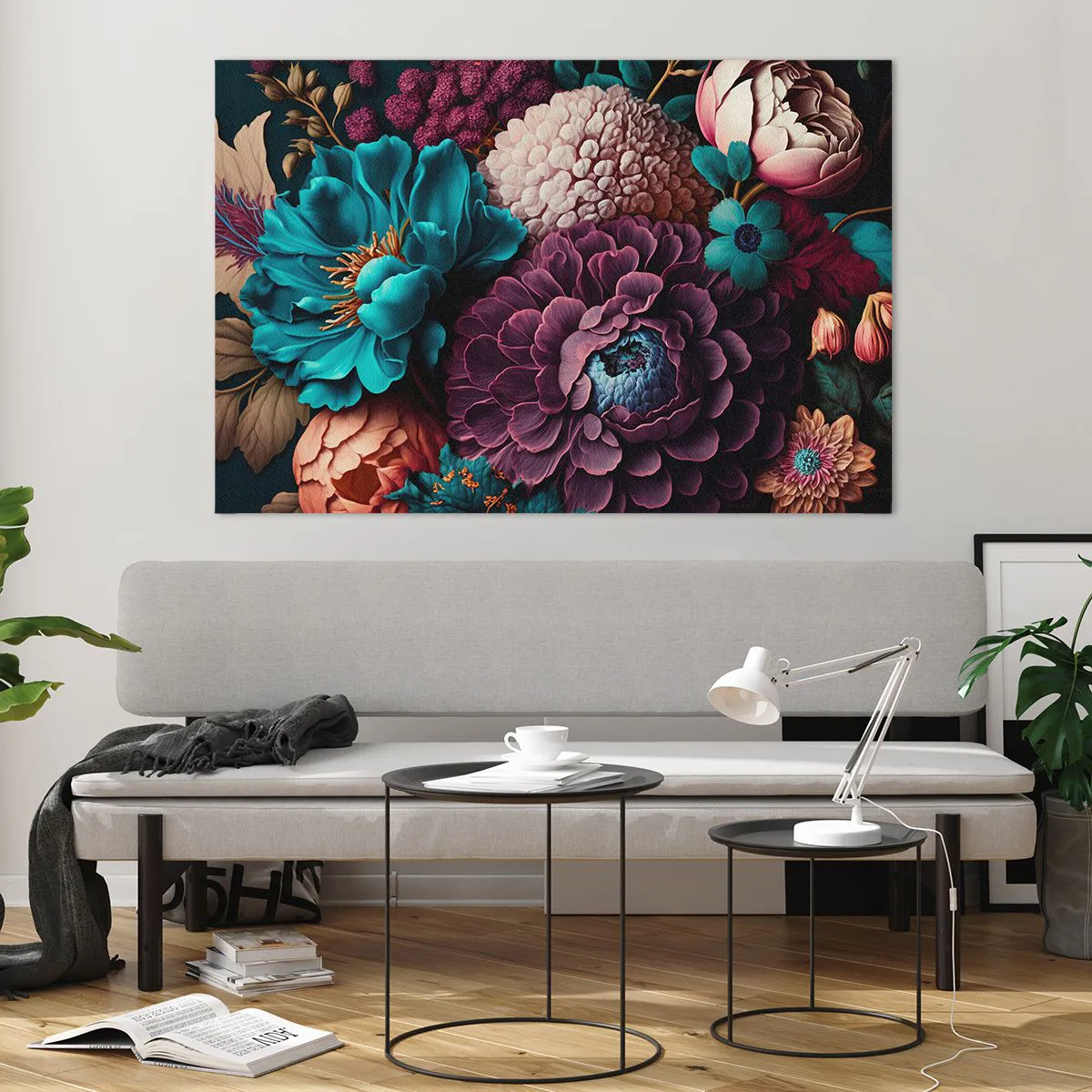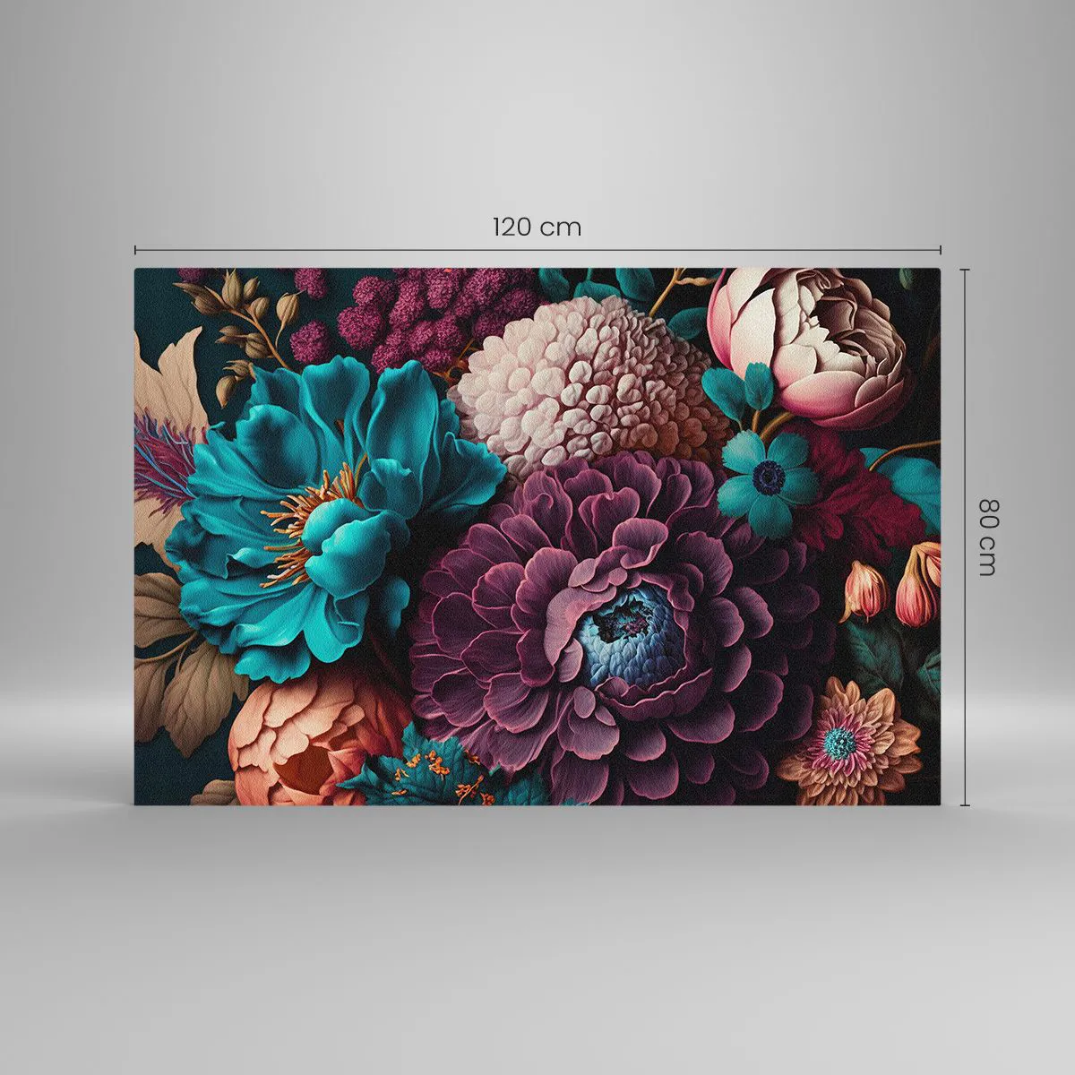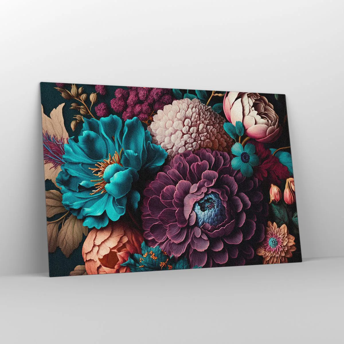 Glasbild - Bild auf glas - Eine reiche Komposition aus Blumen in intensiven Farben - 120x80cm - Natur in Hülle und Fülle - Moderne Wanddekoration für Wohnzimmer und Schlafzimmer ARTTOR
