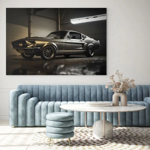 Glasbild - Bild auf glas - Oldtimer in Retro-Garage - 70x100cm - Zurück in die Vergangenheit - Moderne Wanddekoration für Wohnzimmer und Schlafzimmer ARTTOR