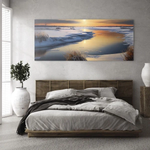 • Winter, Fluss, Landschaft, Landschaften, Natur, Für das Büro, für das Arbeitszimmer, für das Esszimmer, für den Flur, für das Wohnzimmer, für das Schlafzimmer, Weiß, Braun, Grau, Panorama