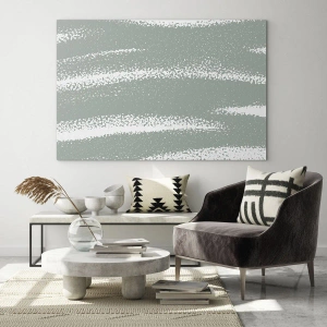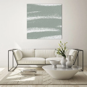 Glasbild - Bild auf glas - Weiße Streifen auf kühlem Grün - 50x70cm - Abstraktion im Winterklima - Moderne Wanddekoration für Wohnzimmer und Schlafzimmer ARTTOR