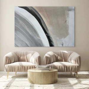 Glasbild - Bild auf glas - Abstrakter Bogen in Schwarz-, Grau- und Beigetönen - 140x50cm - Komposition: Bogen aus Schwarz und Grau - Moderne Wanddekoration für Wohnzimmer und Schlafzimmer ARTTOR