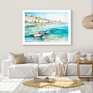 Poster in einem weißen Rahmen - Landschaft in Azurblau - 70x100 cm