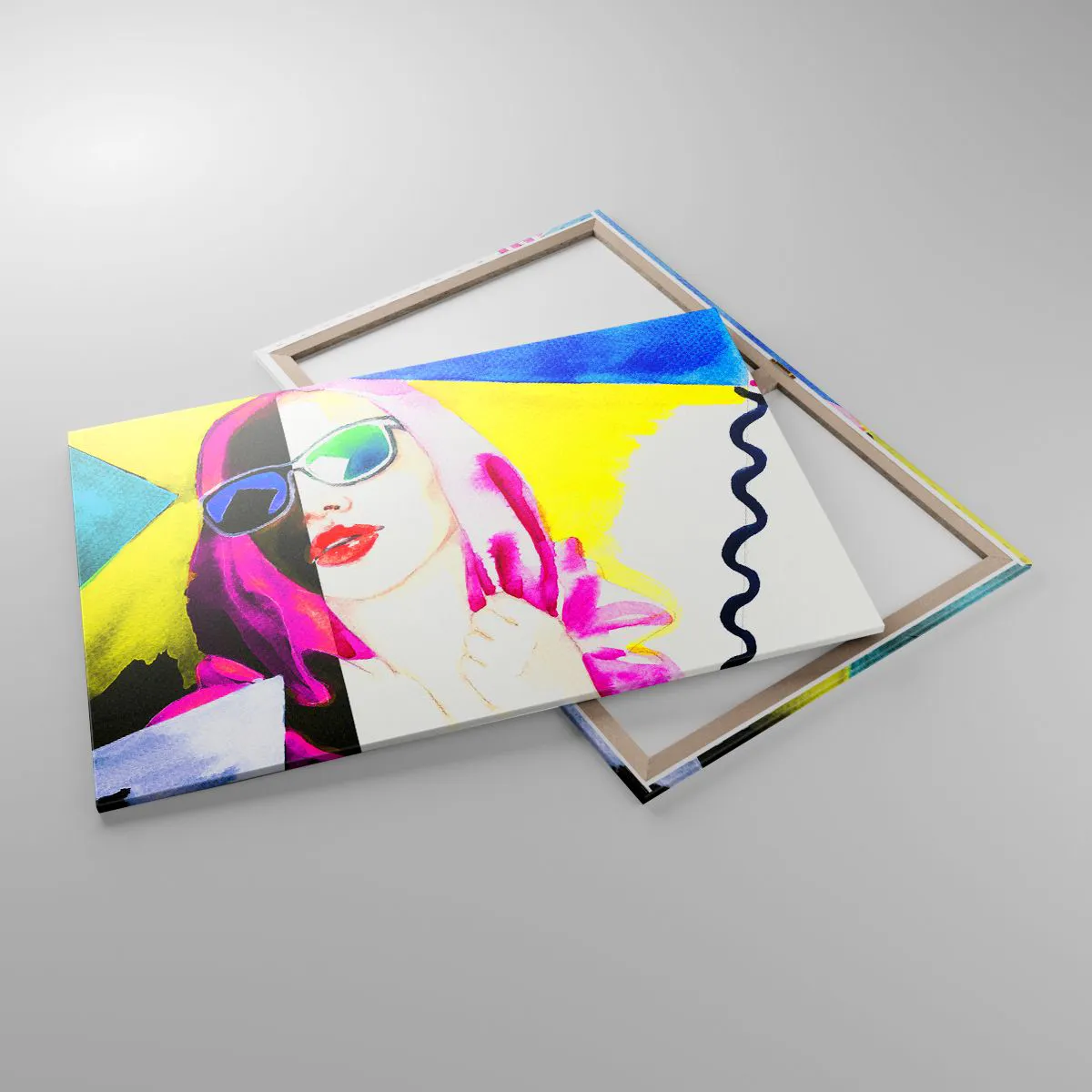 Die Leinwand wird über den Rahmen gespannt. Die Seiten und Kanten werden gedruckt, um das Bild fortzusetzen. Das Bild ist fertig zum Aufhängen an der Wand. Jedes Produkt hat einen am Rahmen befestigten Anhänger und ein Montageset (Schraube + Stift).