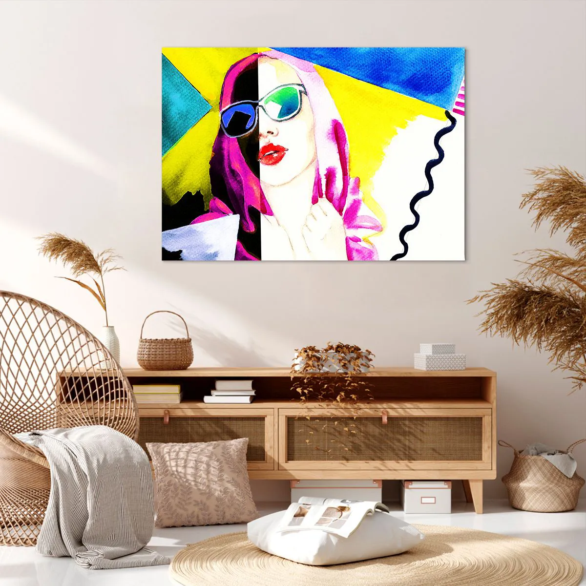 Wir verwenden ökologische, geruchslose und langlebige Tinten mit tiefer Farbsättigung. Durch moderne Drucktechnik wird der Druck präzise platziert, wobei die sichtbare Struktur der Leinwand erhalten bleibt