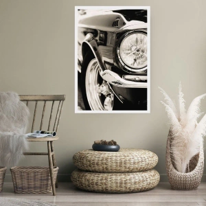 Poster - Eine Schwarzweiß-Nahaufnahme des Scheinwerfers eines Oldtimers. - 50x70cm - Dauerhafter Glanz - Moderne Wanddekoration für Wohnzimmer und Schlafzimmer ARTTOR