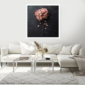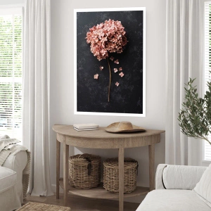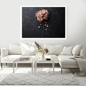 Poster - Eine zarte Hortensienblüte auf dunklem Hintergrund - 100x70cm - Wirklich romantisches Zeichen - Moderne Wanddekoration für Wohnzimmer und Schlafzimmer ARTTOR