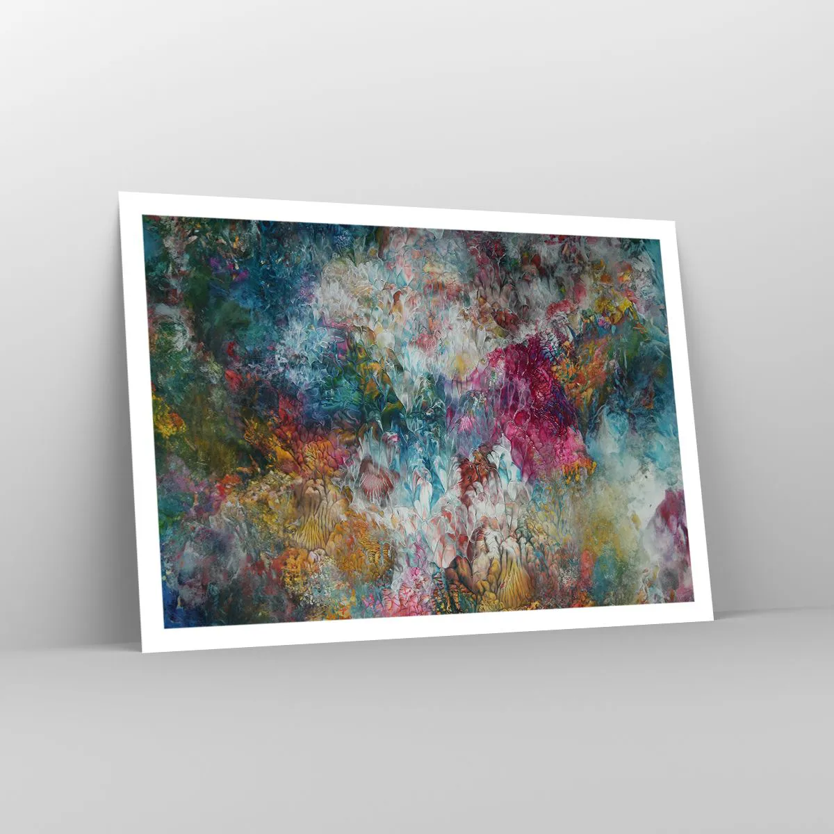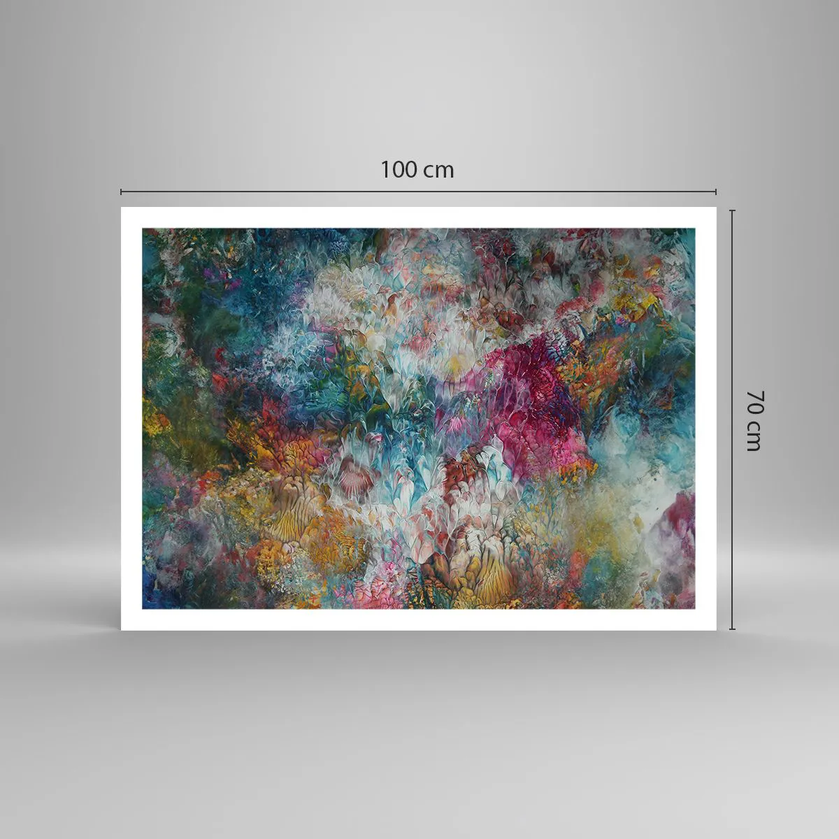 Poster - Eine farbenfrohe Abstraktion, die an blühende Blumen erinnert - 100x70cm - In voller Blüte - Moderne Wanddekoration für Wohnzimmer und Schlafzimmer ARTTOR