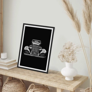 - Ein stilvolles Schwarz-Weiß-Poster mit der Abbildung eines Oldtimers. Perfekt für Autoliebhaber und minimalistische Inneneinrichtungen.