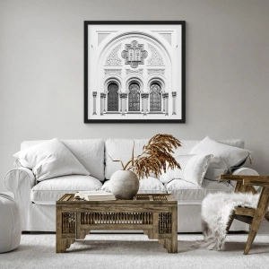 Poster in einem schwarzem Rahmen - Architektonische Details der Fassade im monochromen Stil - 70x50cm - An der Grenze der Kulturen - Moderne Wanddekoration für Wohnzimmer und Schlafzimmer ARTTOR