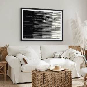 Poster in einem schwarzem Rahmen - Abstrakte Linienkomposition in kontrastierendem Schwarz und Weiß - 70x50cm - Wellen und Vibrationen - Moderne Wanddekoration für Wohnzimmer und Schlafzimmer ARTTOR