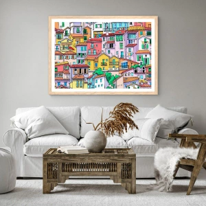 Poster in einem Rahmen aus heller Eiche - Lustige Stadt - 50x40 cm