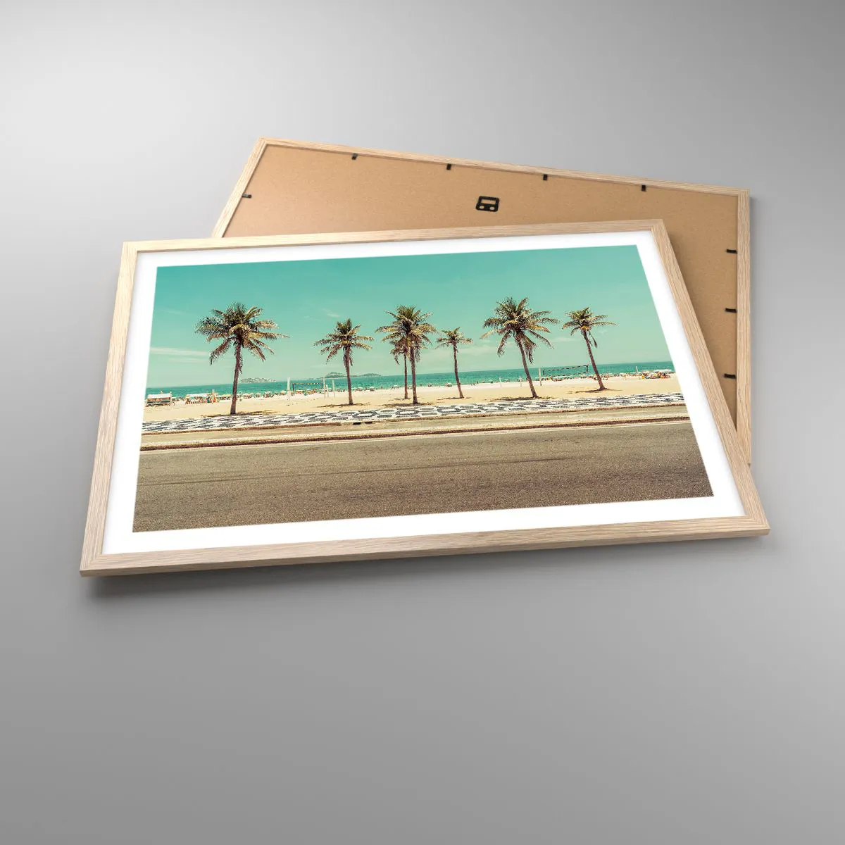 Poster in einem Rahmen aus heller Eiche - Beim Bewachen des Strandes - 70x50 cm