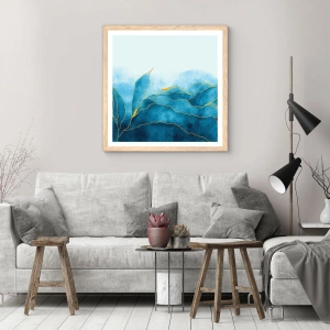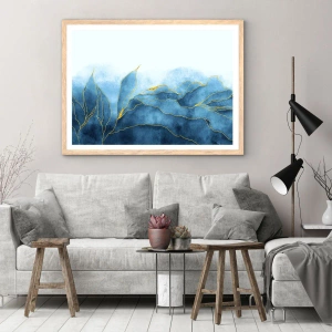 Poster in einem Rahmen aus heller Eiche - Blau im Gold - 30x40 cm