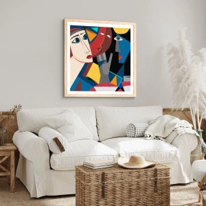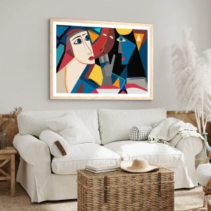 Poster in einem Rahmen aus heller Eiche - Gespräch zwischen Kubisten - 61x91 cm