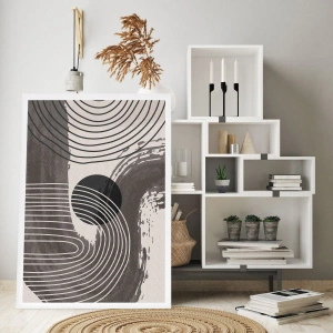• Abstraktion, Minimalismus, Kunst, Abstrakt, Schwarz und Weiß, Für das Büro, für das Arbeitszimmer, für das Esszimmer, für den Flur, für das Wohnzimmer, für das Schlafzimmer, Weiß, Schwarz, Grau, Schwarz und Weiß, Horizontal