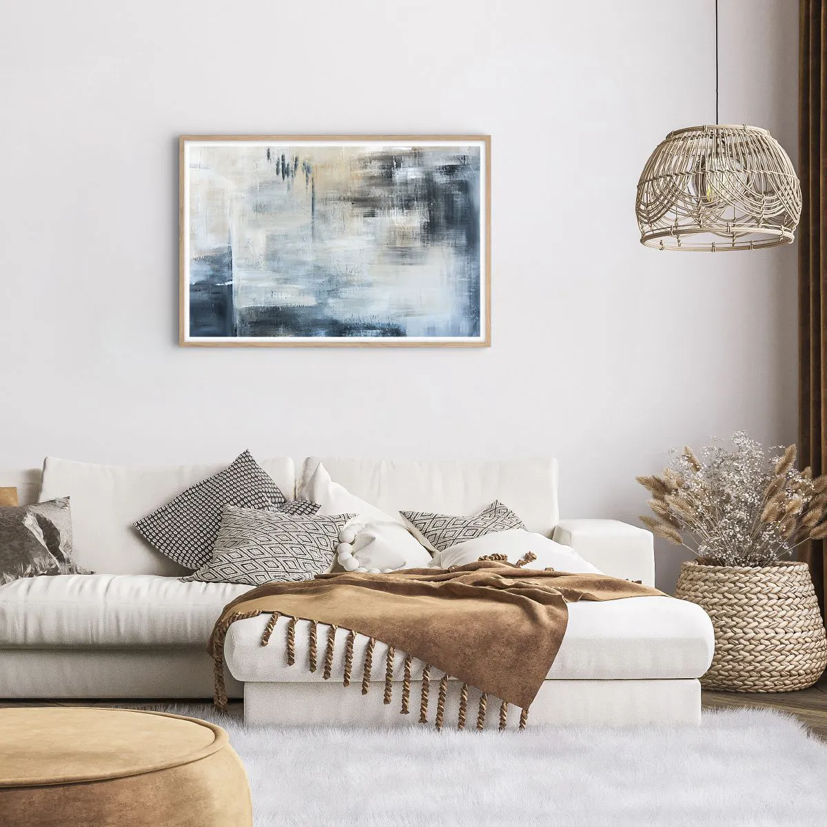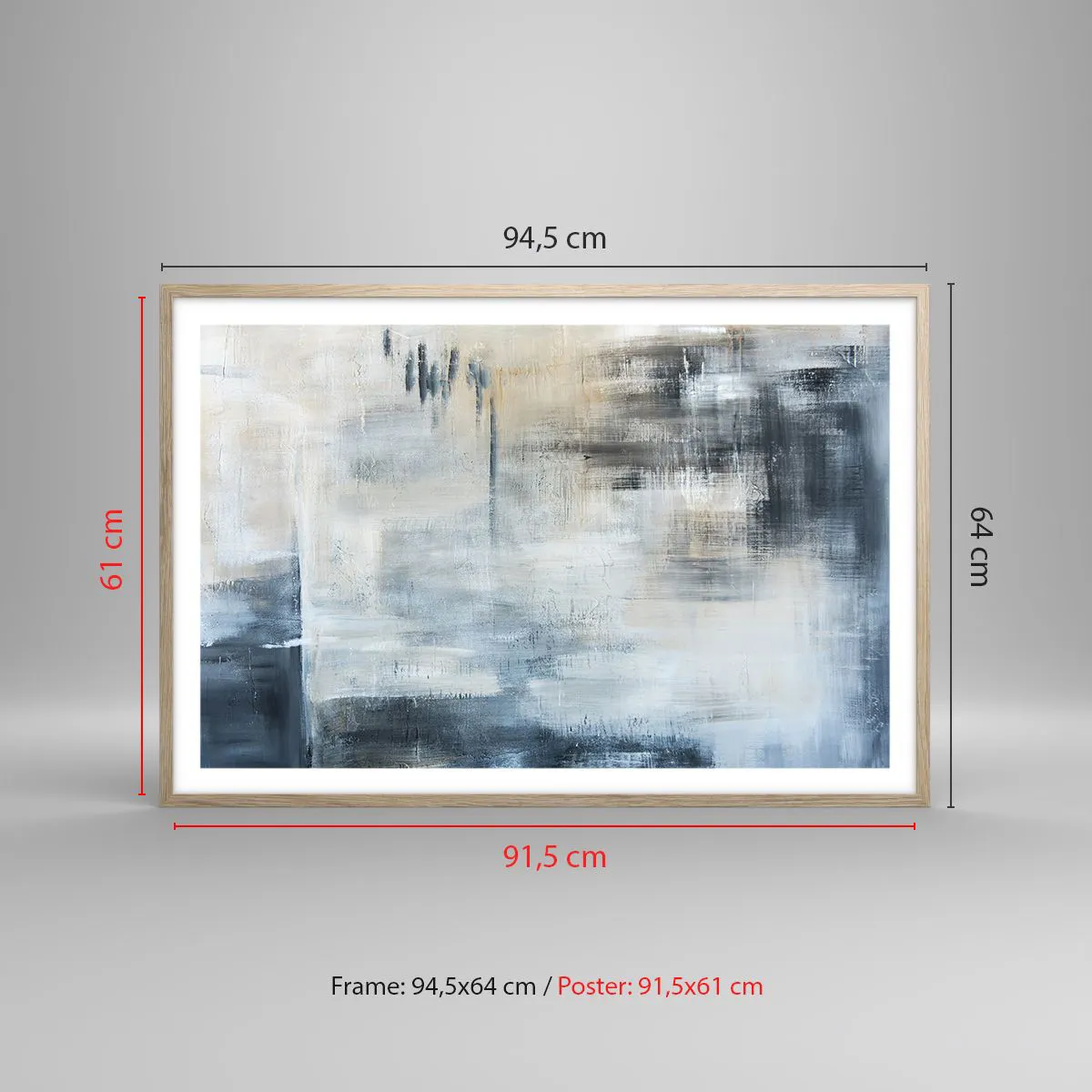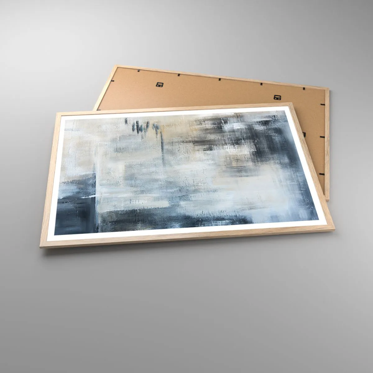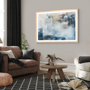 Poster in einem Rahmen aus heller Eiche - Hinter dem blauen Vorhang - 91x61 cm