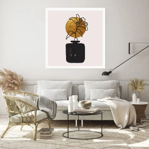 Poster - Abstrakte Komposition mit einer Blume und einem goldenen Kreis - 50x70cm - Schönheit ist Gold wert - Moderne Wanddekoration für Wohnzimmer und Schlafzimmer ARTTOR