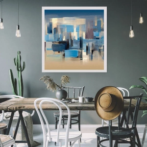 Poster - Geometrische Formen in Blau- und Beigetönen - 100x70cm - Blaue Konstruktion - Moderne Wanddekoration für Wohnzimmer und Schlafzimmer ARTTOR