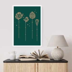 Poster - Goldene Zeichnungen von Kräutern auf dunkelgrünem Hintergrund - 100x70cm - Familie ZIÓŁkowski - Moderne Wanddekoration für Wohnzimmer und Schlafzimmer ARTTOR