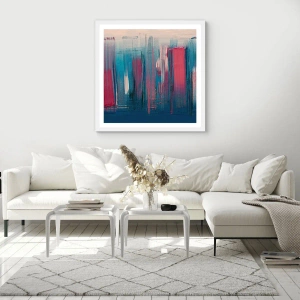 Poster in einem weißen Rahmen - Vertikale Komposition in Blau und Rot - 70x50 cm