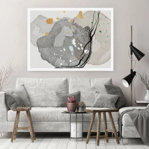Poster - Organische Formen in Grautönen mit Akzenten in Schwarz und Gold - 100x70cm - Organische Komposition - Moderne Wanddekoration für Wohnzimmer und Schlafzimmer ARTTOR