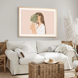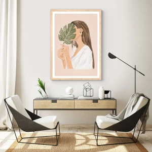 Poster in einem Rahmen aus heller Eiche - Geheimnisvolles Porträt mit Fächer - 60x60 cm