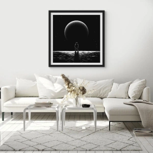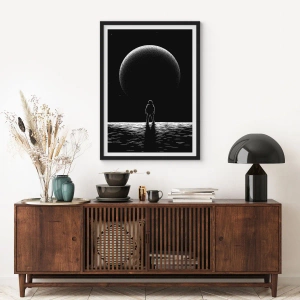 Poster in einem schwarzem Rahmen - Ein Astronaut vor dem Hintergrund eines großen Planeten im Weltraum - 100x70cm - Angesicht zu Angesicht - Moderne Wanddekoration für Wohnzimmer und Schlafzimmer ARTTOR
