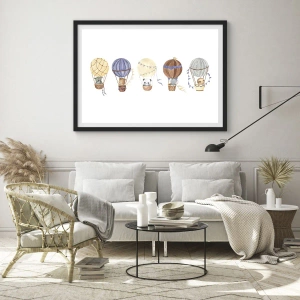 Poster in einem schwarzem Rahmen - Niedliche Tiere in Luftballons auf weißem Hintergrund im Aquarellstil - 50x70cm - Freunde auf Reise - Moderne Wanddekoration für Wohnzimmer und Schlafzimmer ARTTOR