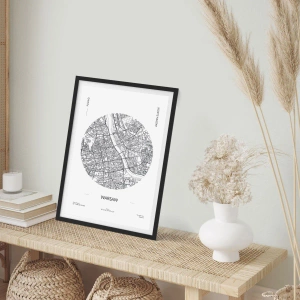 Poster in einem schwarzem Rahmen - Eine Karte von Warschau im minimalistischen Stil - 100x70cm - Anatomie von Warschau - Moderne Wanddekoration für Wohnzimmer und Schlafzimmer ARTTOR