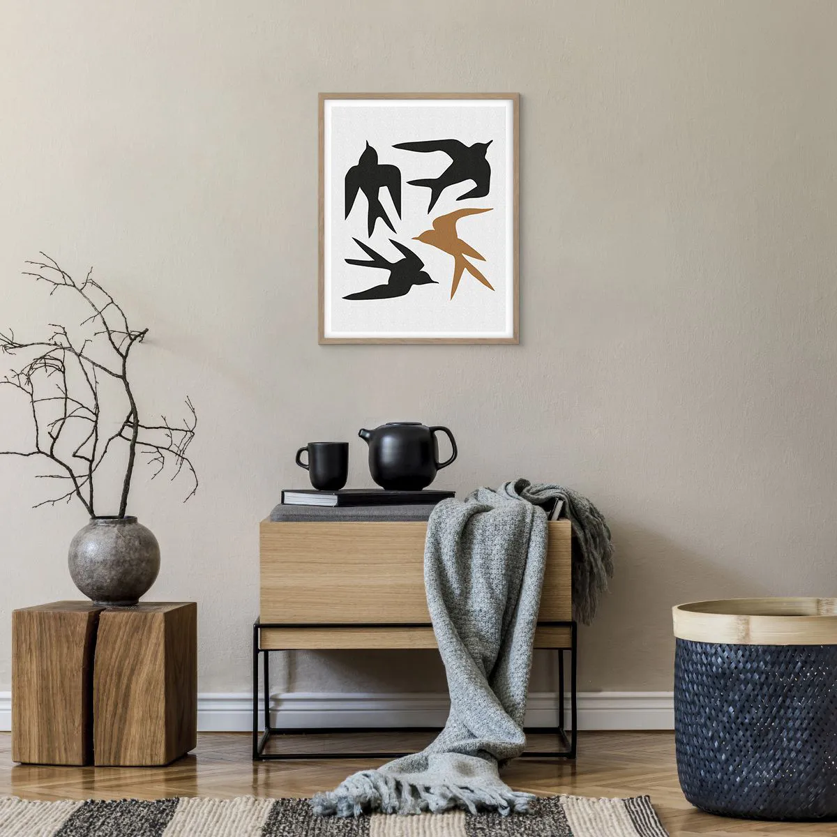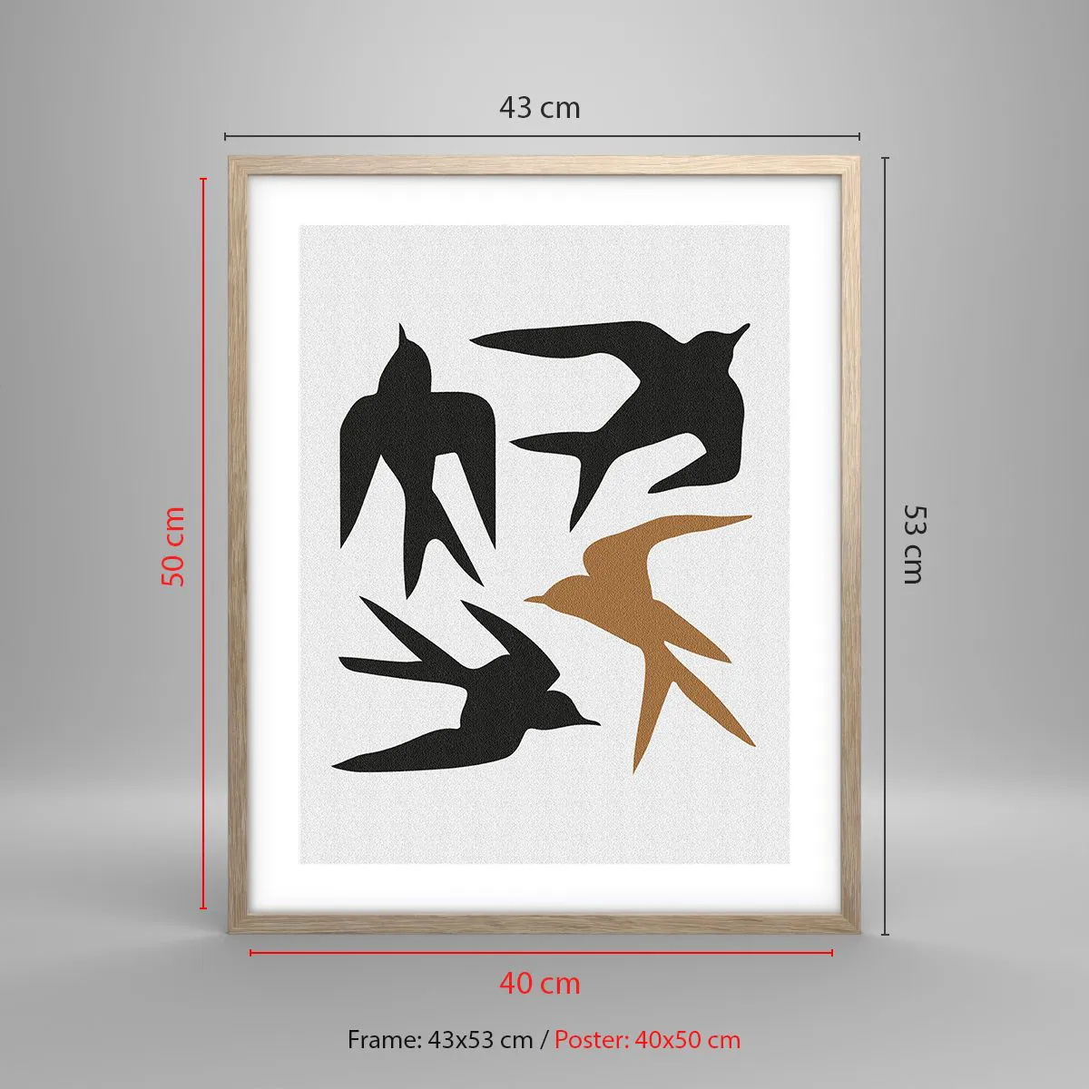 Poster in einem Rahmen aus heller Eiche - Schwalbenspaß - 40x50 cm