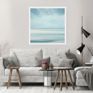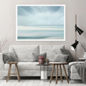 Poster - Subtile Abstraktion in Blau- und Weißtönen - 50x70cm - Frieden bis zum Horizont - Moderne Wanddekoration für Wohnzimmer und Schlafzimmer ARTTOR