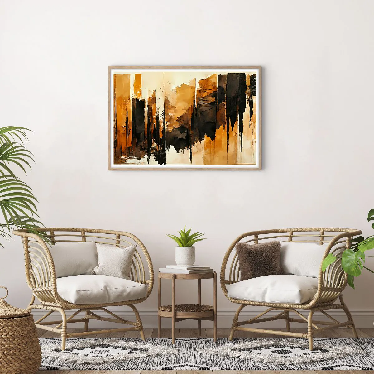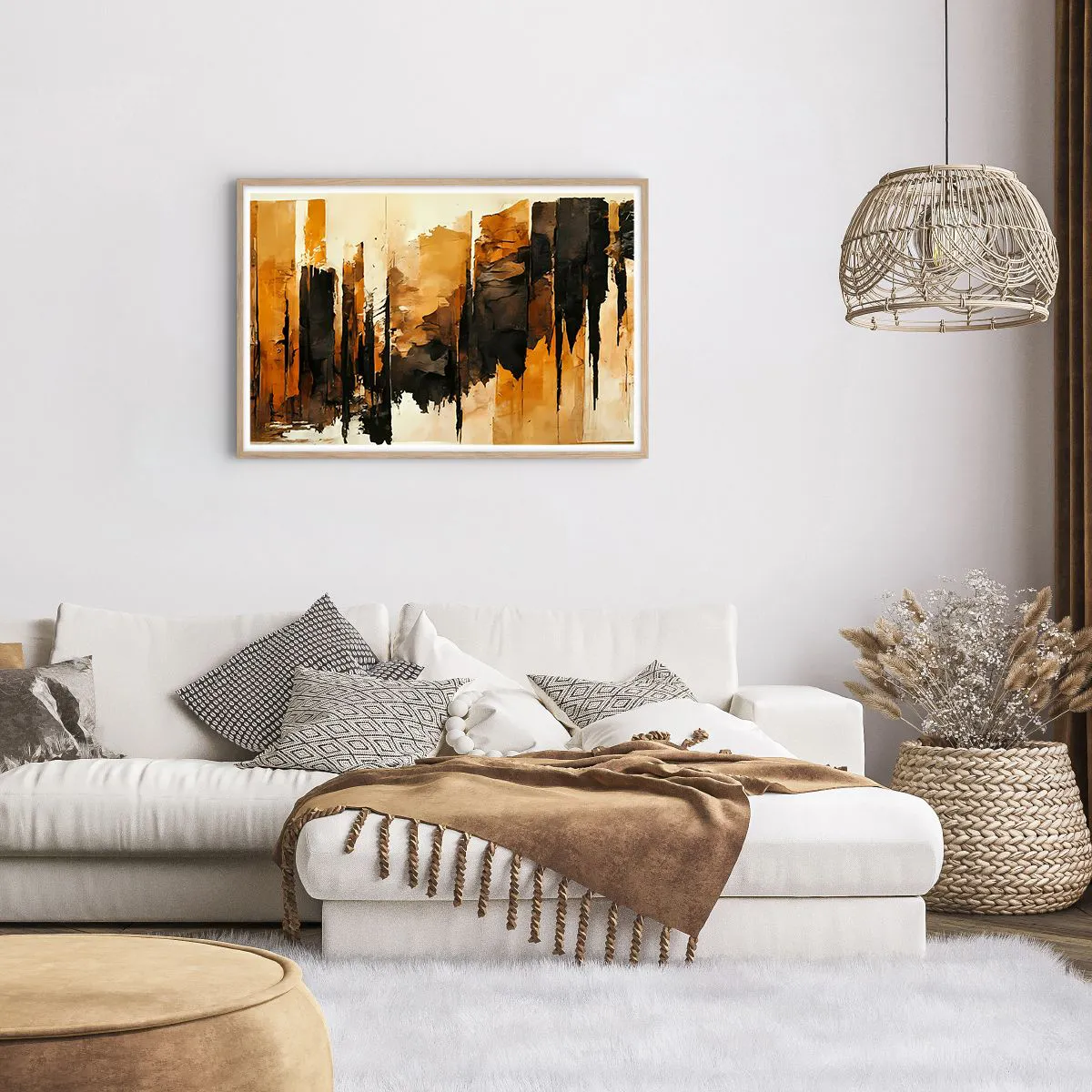 Poster in einem Rahmen aus heller Eiche - Harmonie von Schwarz und Gold - 91x61 cm