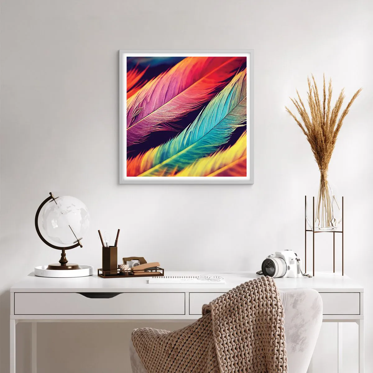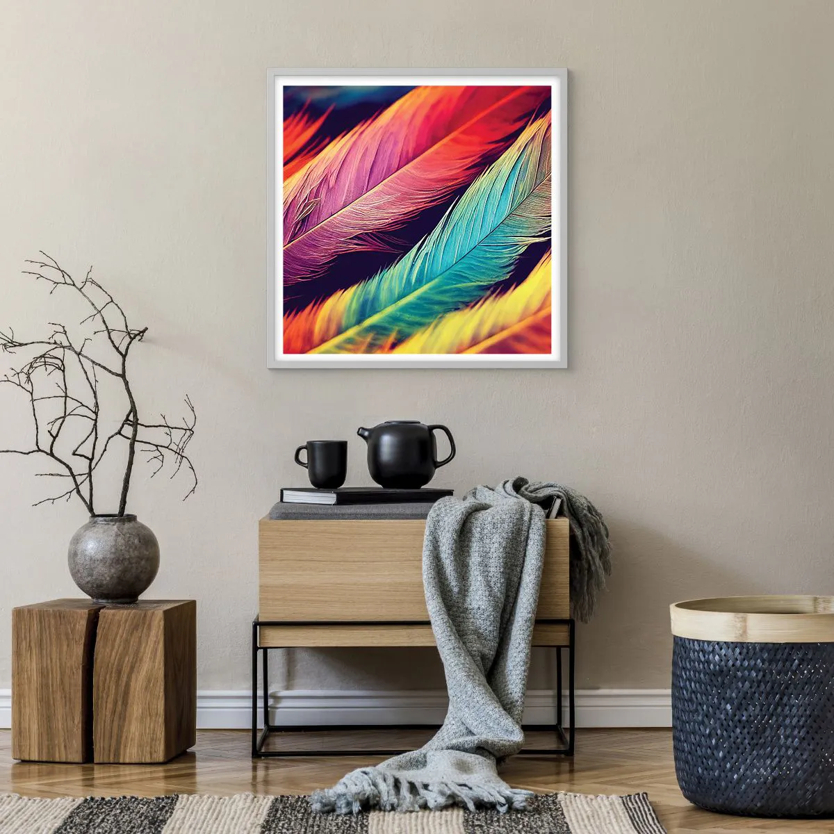 Poster in einem weißen Rahmen - Gefiederter Regenbogen - 60x60 cm