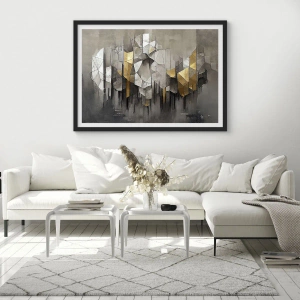 • Abstrakt, Kunst, Art Deco, Abstrakte Kunst, Für das Büro, für das Arbeitszimmer, für das Esszimmer, für den Flur, für das Wohnzimmer, für das Schlafzimmer, Grau, Gold, Vertikal