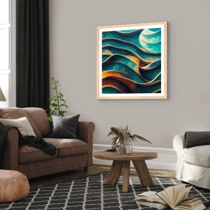Poster in einem Rahmen aus heller Eiche - Blaue Mäander - 50x50 cm