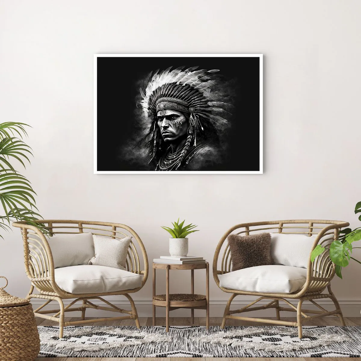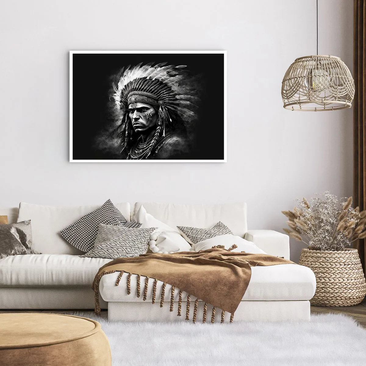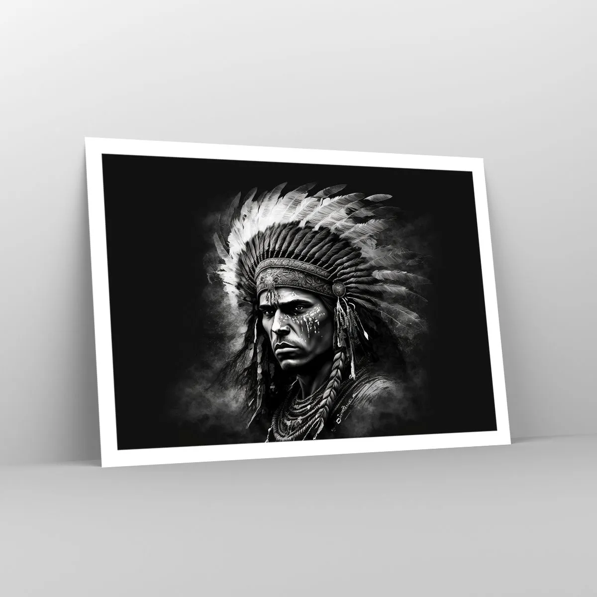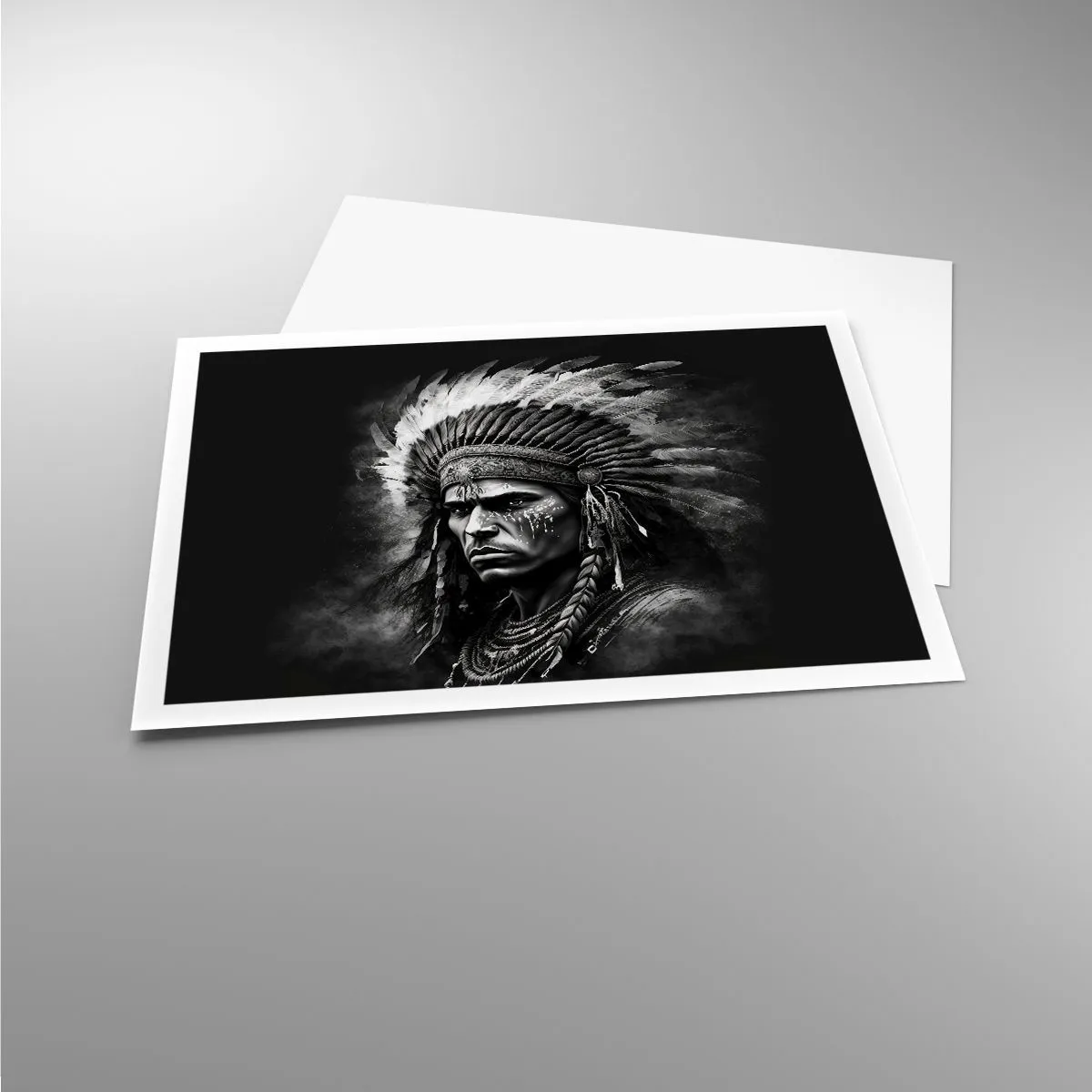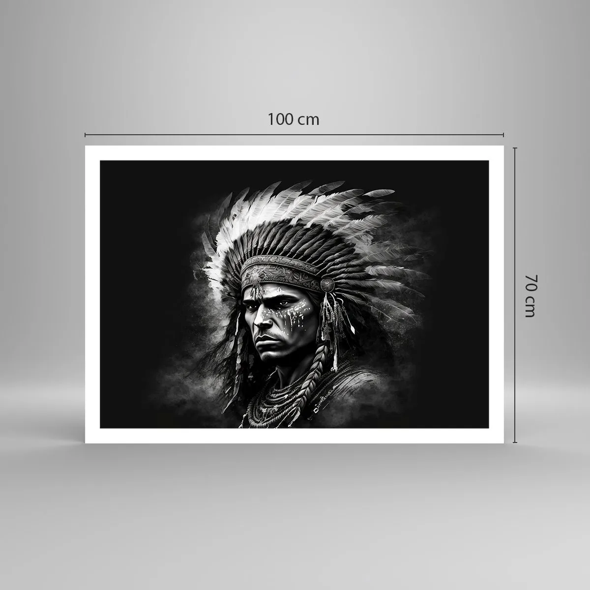 Poster - Porträt eines Häuptlings mit Federschmuck vor schwarzem Hintergrund - 100x70cm - Anführer und Krieger - Moderne Wanddekoration für Wohnzimmer und Schlafzimmer ARTTOR