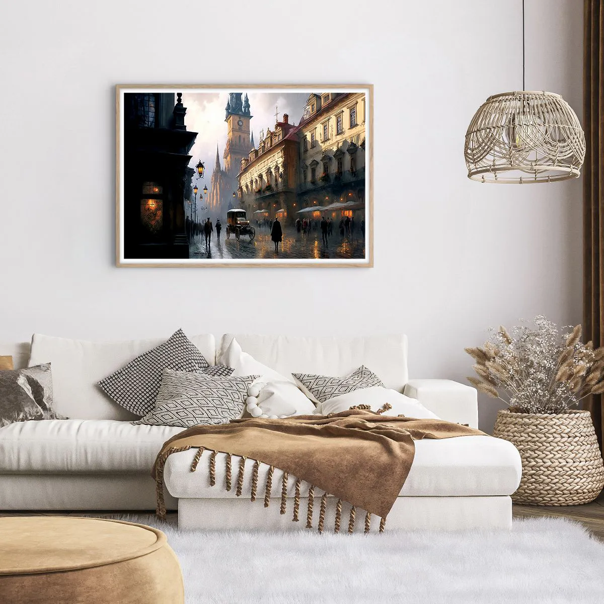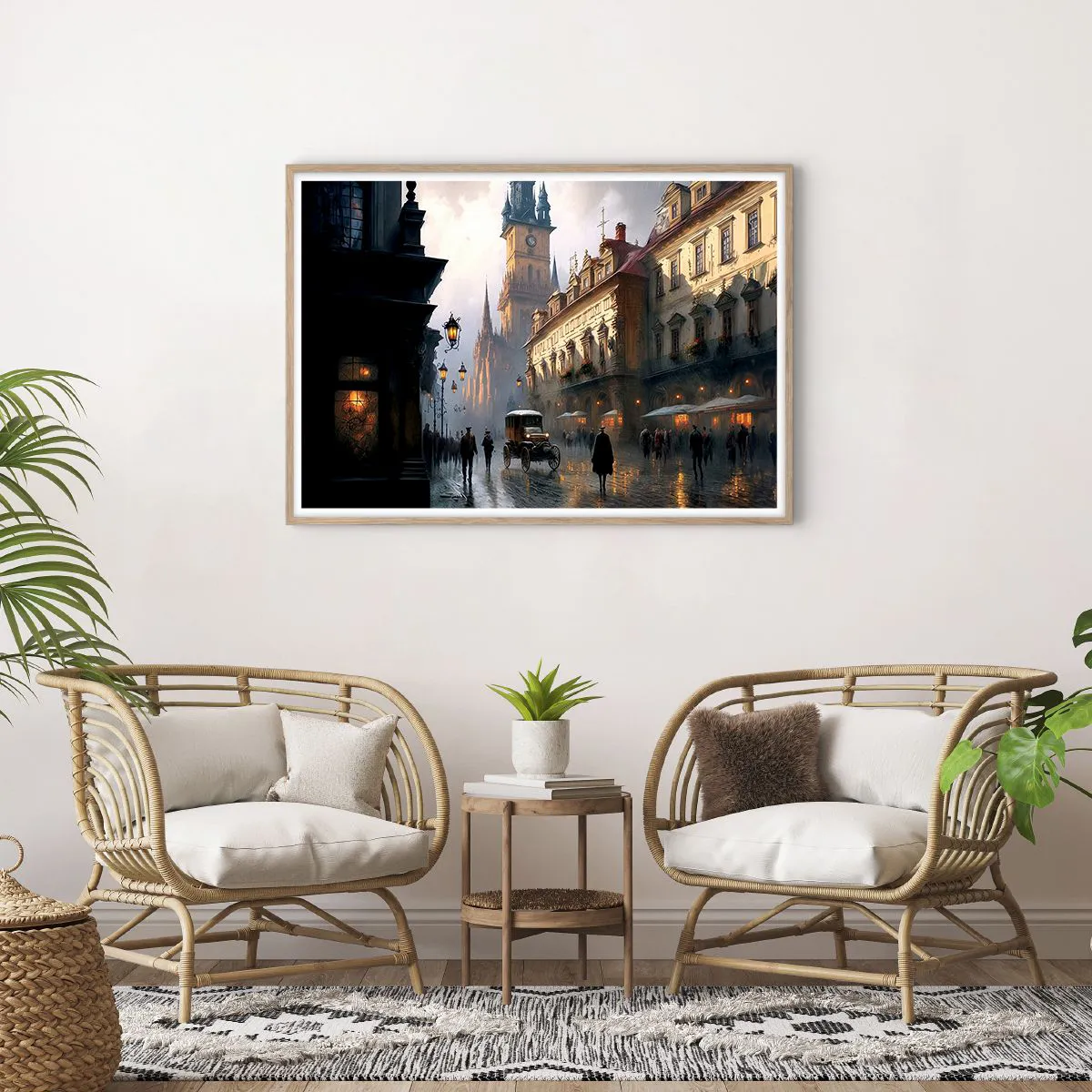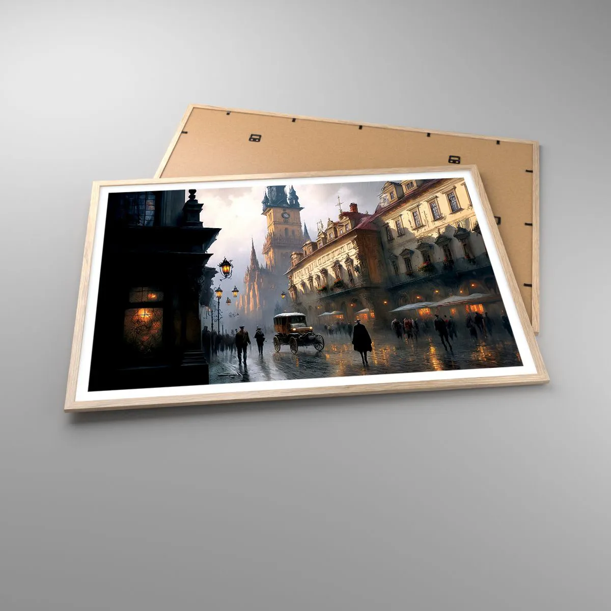 Poster in einem Rahmen aus heller Eiche - Charme eines Prager Abends - 100x70 cm