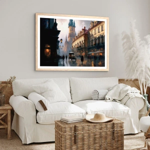 Poster in einem Rahmen aus heller Eiche - Charme eines Prager Abends - 50x70 cm