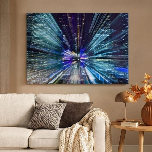 Bild auf Leinwand - Leinwandbild - Dynamische Ansicht der Stadt bei Nacht mit Lichteffekt - 70x50cm - Übergang zum Hyperraum - Moderne Wanddekoration für Wohnzimmer und Schlafzimmer ARTTOR
