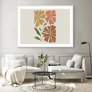 • Boho, Blumen, Minimalismus, Botanik, Blumen, Pastell, Für das Büro, für das Arbeitszimmer, für das Esszimmer, für den Flur, für das Wohnzimmer, für das Schlafzimmer, Weiß, Orange, Grün, Gelb, Vertikal