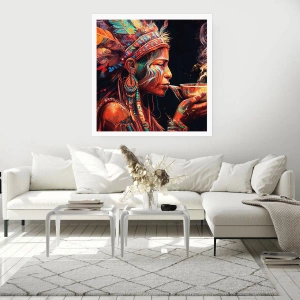 Poster - Eine farbenfrohe Figur im Ethno-Stil mit einer Tasse dampfenden Getränks - 100x70cm - Magisches Ritual - Moderne Wanddekoration für Wohnzimmer und Schlafzimmer ARTTOR