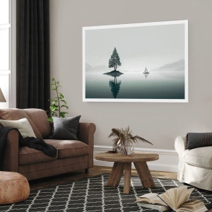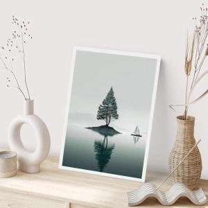 Poster - Eine minimalistische Landschaft mit einem Baum auf einer Insel und einem Segelboot. - 100x70cm - Traum - Moderne Wanddekoration für Wohnzimmer und Schlafzimmer ARTTOR