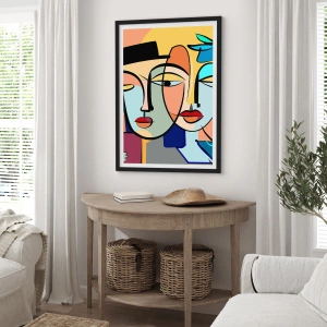 Poster in einem schwarzem Rahmen - Kubistische Porträts in leuchtenden Farben mit floralem Motiv - 70x50cm - Picassos randez vous - Moderne Wanddekoration für Wohnzimmer und Schlafzimmer ARTTOR