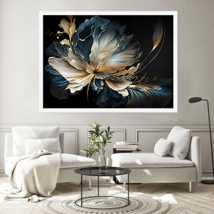 Poster - Ein elegantes abstraktes Blumenarrangement in Gold und Marineblau. - 50x70cm - Märchenhafte Farnblume - Moderne Wanddekoration für Wohnzimmer und Schlafzimmer ARTTOR