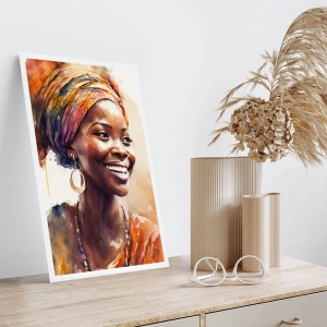 • Frau, Afroamerikanerin, Porträt, Afrika, Menschen, Mode, Kunst, Für das Esszimmer, für den Flur, für das Wohnzimmer, für das Schlafzimmer, , Weiß, Braun, Orange, Vertikal