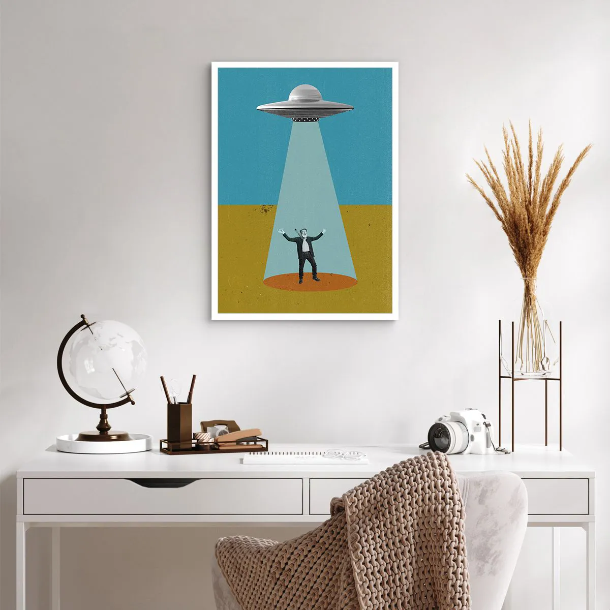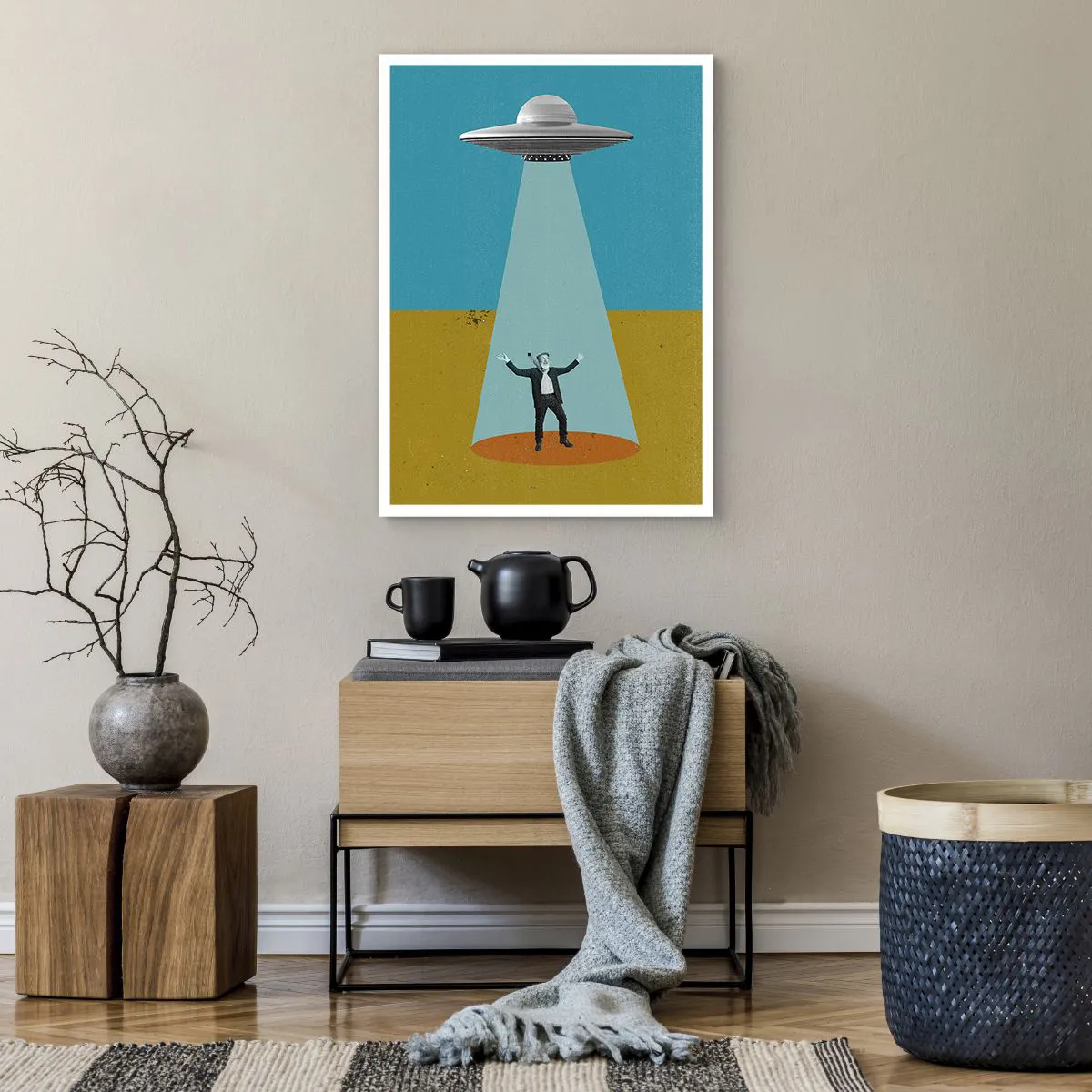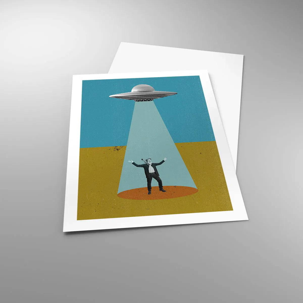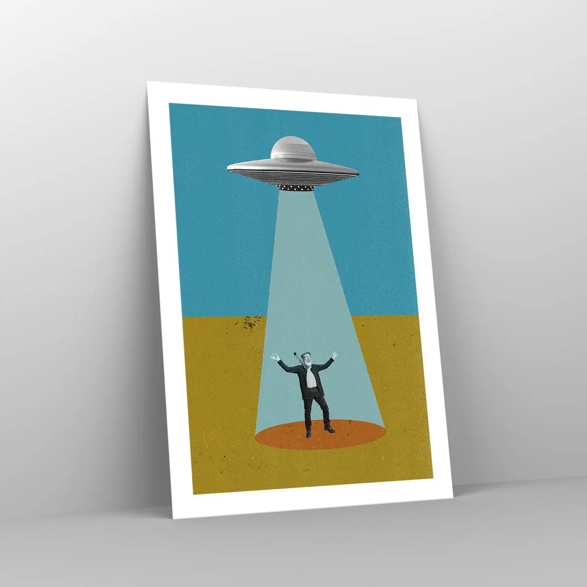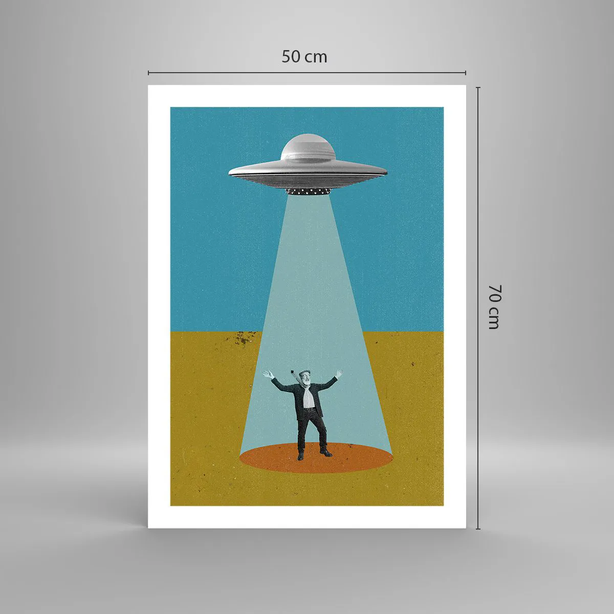 Poster - Retro-Illustration einer UFO-Entführung - 50x70cm - Nahe Begegnung - Moderne Wanddekoration für Wohnzimmer und Schlafzimmer ARTTOR