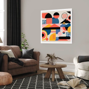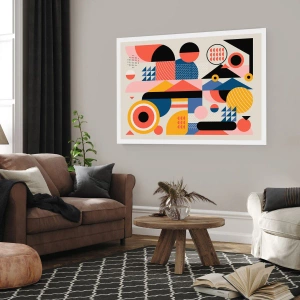 Poster - Bunte geometrische Abstraktion mit dynamischen Formen - 50x70cm - Komposition: Na, los, spiel! - Moderne Wanddekoration für Wohnzimmer und Schlafzimmer ARTTOR