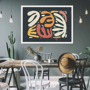 Poster - Abstrakte Formen in warmen Farben auf dunklem Hintergrund - 100x70cm - Komposition – Ich erwische dich gleich - Moderne Wanddekoration für Wohnzimmer und Schlafzimmer ARTTOR
