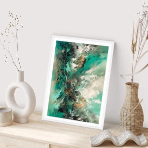 Poster in einem weißen Rahmen - Smaragdgrüne und schwarze Brandung - 70x100 cm